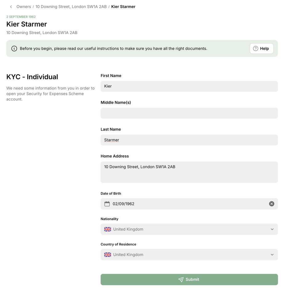 We need to get from you your full name, address, date of birth and confirmation of your nationality and country of residence.